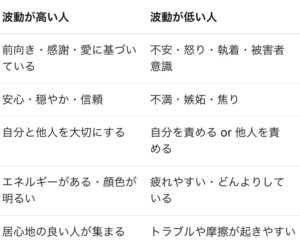 ここで、波動が高い人と低い人の特徴を比べてみましょう。